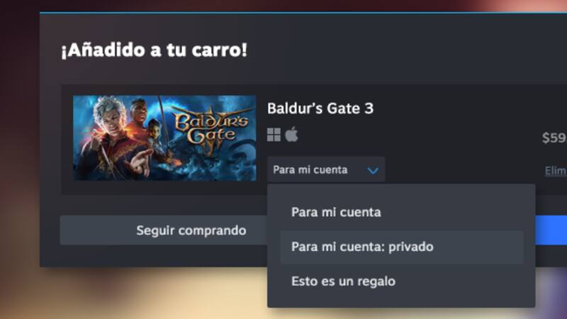 Con esto los usuarios podrán marcar un juego como privado previo a finalizar las compras.