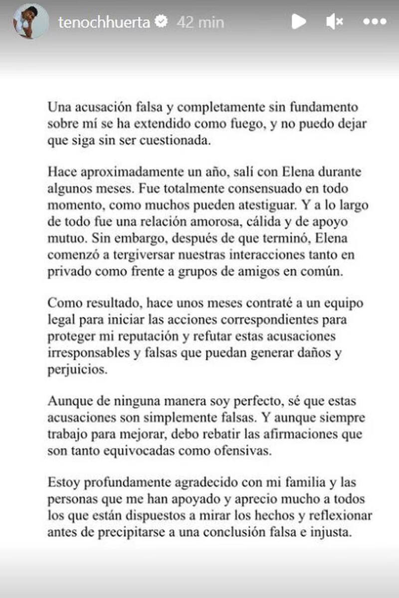 Tenoch Huerta también reiteró en su publicación que la acusación de Ríos es “simplemente falsa”, calificándolas como “equivocadas y ofensivas”.