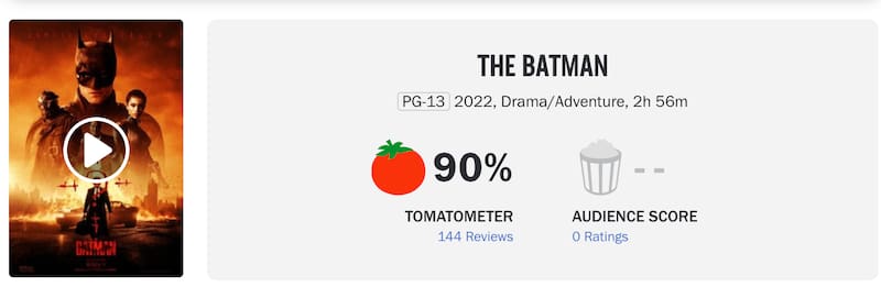 Así, mientras ya hay varias reseñas que hablan en detalle sobre lo que dejó en la crítica la película protagonizada por Robert Pattinson, para los fanáticos de los datos también se habilitó la página de The Batman en Rotten Tomatoes.