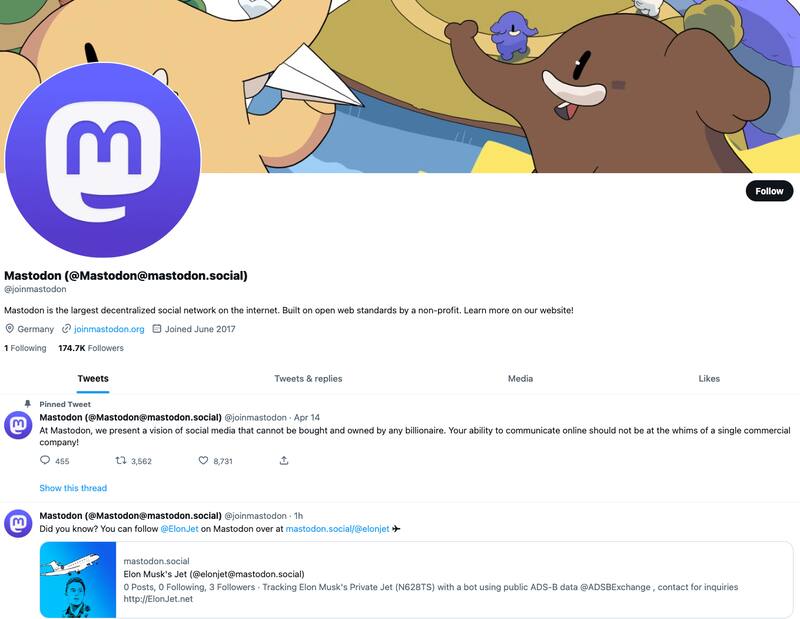 En primer lugar durante la tarde del jueves recién pasado Twitter suspendió la cuenta de Mastodon (@joinmastodon) en su plataforma ¿La razón? Por ahora no se ha establecido nada oficial, pero desde Tech Crunch especulan que podría deberse a uno de los tweets más recientes de Mastodon que incluía un link al perfil en ese servicio de @ElonJet.