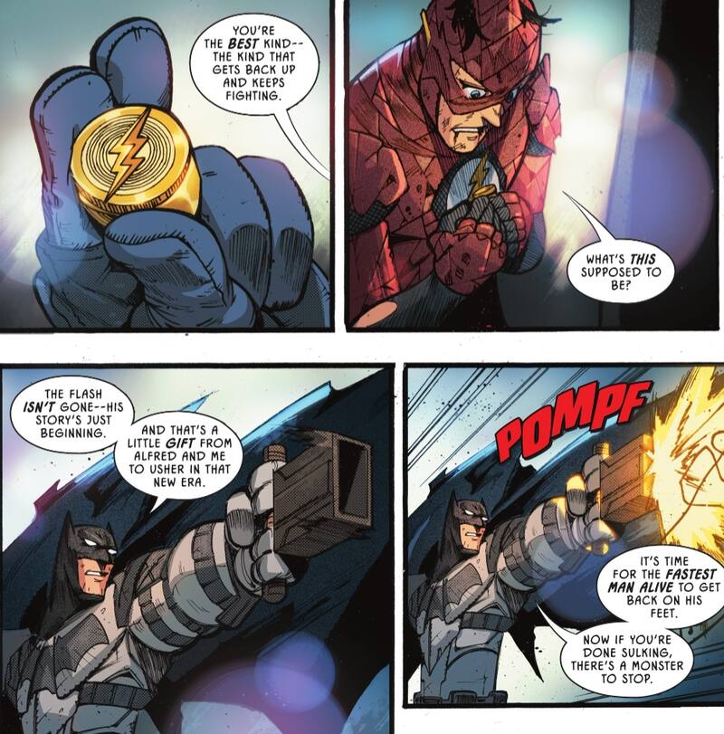 Concretamente, en Flash: The Fastest Man Alive #1 se muestra cómo Barry Allen recibe el anillo de Flash como un regalo por parte de Batman.