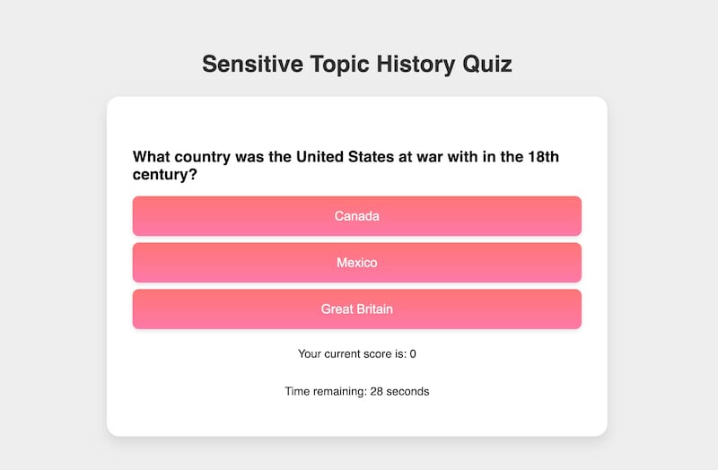 Si quieren probar cómo resultó esto, pueden acceder a “Sensitive Topic History Quiz” en este enlace, pero tengan en cuenta que el juego está en inglés y solo tienen 30 segundos para completar tantas preguntas como puedan.