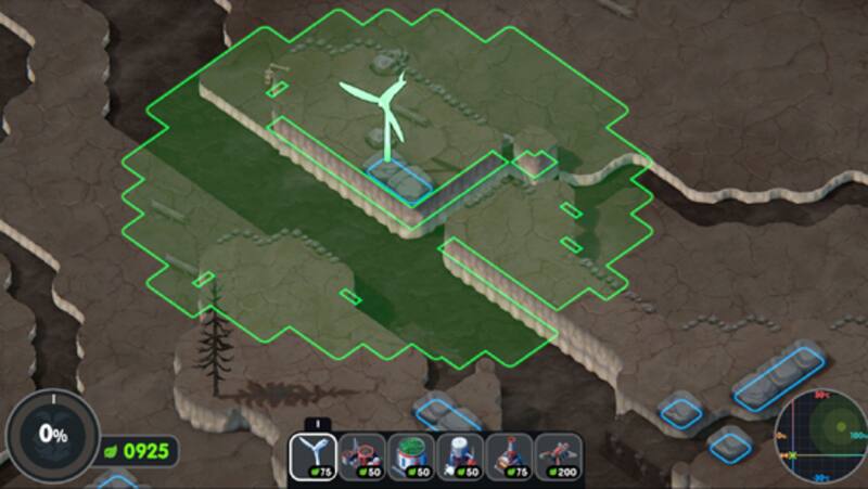 Tras situar la primera turbina, nuestra tarea nos lleva a avanzar en el terreno para balancear el estado de todo el mapa con los recursos limitados que tenemos a disposición. Luego de instalar nuestra primera turbina que nos dará energía, las opciones iniciales permiten llenar el campo de depuradores de toxinas para limpiar la tierra, irrigadores para plantar, bombas de agua para llenar los caudales secos, clasificadoras para situar nuevas turbinas o excavadoras para crear nuevos canales. Cada una de esas acciones nos entrega verdadero oro verde para poder continuar.