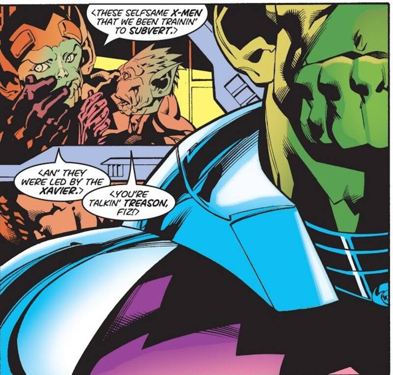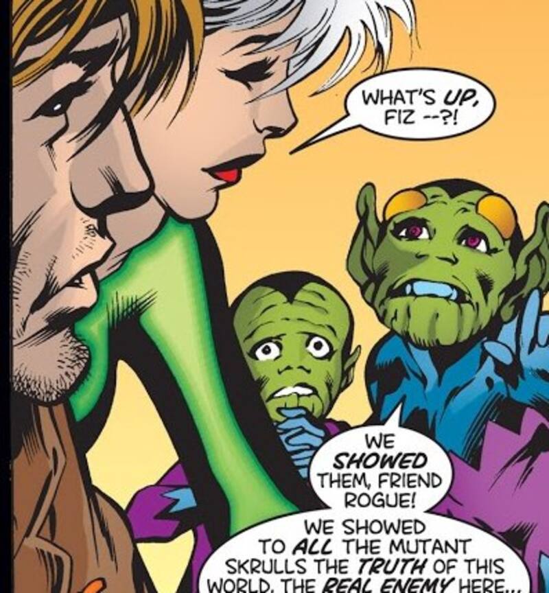 Fiz apareció por primera vez en los cómics en el marco de X-Men #95 en 1999 y en esa historia el equipo creativo comandado por Alan Davis y Tom Raney estableció que el personaje había sido exiliado por los skrulls debido a sus habilidades. Pero Fiz trató de buscar un lugar en la Tierra e incluso ayudó a los X-Men a pelear contra Apocalypse.