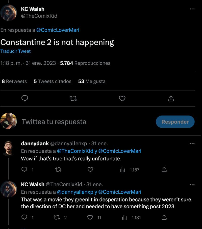 De acuerdo a KC Walsh, una persona que habitualmente publica rumores ligados a películas y series inspiradas en cómics, Constantine 2 habría sido cancelada ¿La razón? Según Walsh el proyecto solo fue autorizado en un afán por mostrar proyección para las adaptaciones de DC y eso ya no sería necesario.