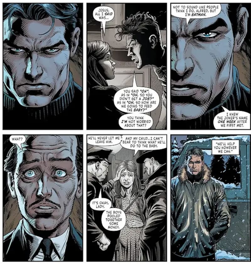 A partir de ahí, utilizan a Joe Chill para convertirlo en un nuevo Joker, lo que no funciona. Pero el aparentemente verdadero Joker realmente impulsó a todo el juego para convertirse en la única herida del héroe. Sin el dolor de los Wayne, ahora el tendrá todo el corazón del murciélago.