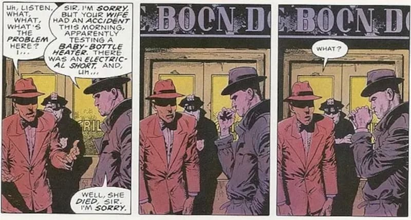 Es ahí en donde viene el gran cambio, ya que Three Jokers recupera una de las viñetas para establecer al villano como un tipo que siempre fue abusivo y a su esposa como una persona que acudió a la policía. A diferencia de “La Broma Asesina”, en donde los oficiales le dicen que hubo un accidente y la mujer murió, aquí se plantea que la policía le mintió al Joker y ella escapó lejos.