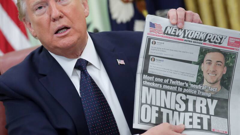 Su acción se debió a que Twitter etiquetó uno de sus mensajes con fact-checking, catalogándolo de potencialmente engañoso, por lo que solicitaba que la Comisión Federal de Comunicaciones examinase la regulación bajo la Sección 230 de la Ley de Decencia de Comunicaciones. En el camino, abría la puerta a que se concretasen demandas contra las compañías tecnológicas por parte de aquellos usuarios cuyos mensajes o cuentas eran bloqueadas o modificadas.