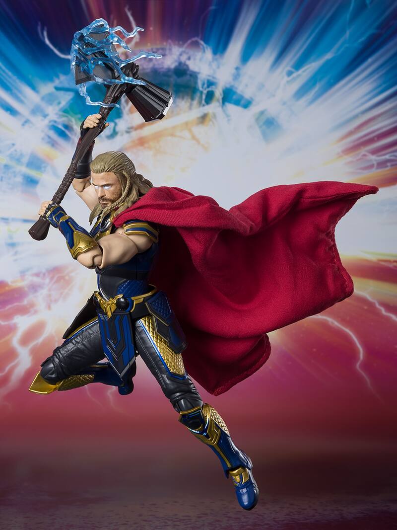 Resulta que días atrás la compañía japonesa S.H. Figuarts compartió algunas imágenes de sus coleccionables inspirados en Thor: Love and Thunder. Estas figuras corresponden a Thor y Jane con sus respectivos atuendos de superhéroes y mientras en el caso del hijo de Odín podemos ver que lucirá un traje con un azul eléctrico, detalles dorados y mantendrá su cabello largo, respecto a Jane se puede apreciar que tendrá un casco similar a su contraparte de los cómics, una armadura plateada con una especie de falda sobre pantalones negros y una capa. Todo mientras llevará una versión visiblemente reconstruida del Mjölnir.
