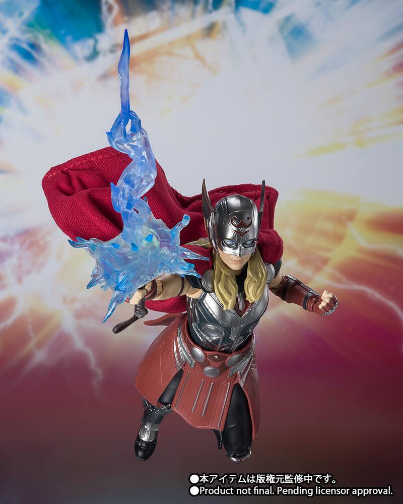 Como pueden notar, las imágenes de las figuras de S.H. Figuarts indican que estos diseños no corresponden a los productos finales y están esperando la aprobación de Marvel Studios y Disney. En ese sentido, aunque este material claramente no es falso, hay que tener en cuenta que algunos detalles podrían cambiar en los atuendos de Thor y Jane de cara al estreno de Thor: Love and Thunder en junio de este año.