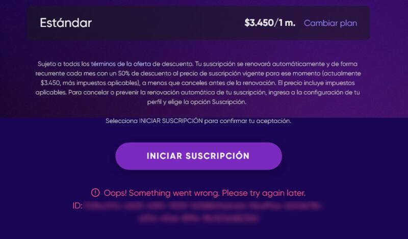 No es el único inconveniente. Otro problema aún más relevante para el streaming está ocurriendo en las primeras horas de servicio: a la hora de publicación de esta nota existen casos de personas que intentan crear una cuenta, e ingresar su tarjeta de crédito como medio de pago, pero el sistema simplemente les lanza el error.