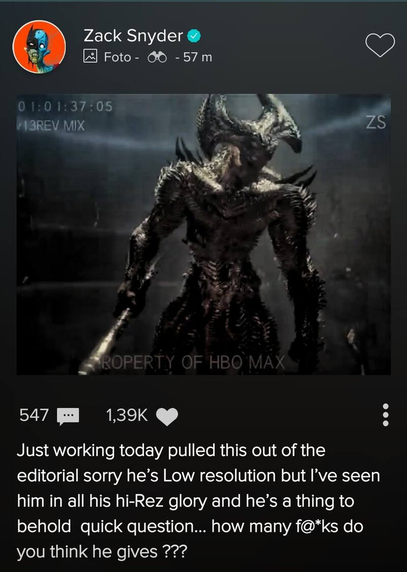 “Solo estoy trabajando hoy, acabo de sacar esto de la editorial. Lo siento, es de baja resolución, pero lo he visto en toda su gloria de alta resolución y es algo digno de contemplar. Pregunta rápida ... ¿cuántas mierdas cree que le importa?”, escribió el director.