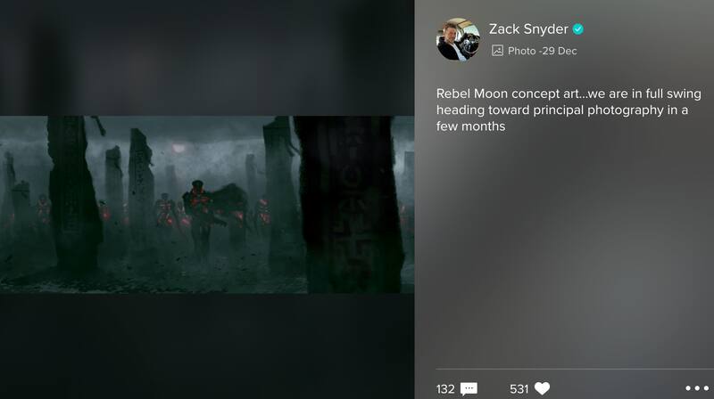 “Arte conceptual de Rebel Moon...estamos en plena marcha hacia la fotografía principal en unos meses”, escribió el director.