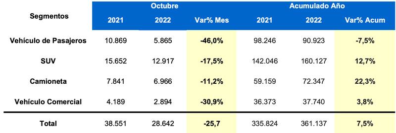 En el acumulado anual, las matriculaciones de SUV alcanzaron las 160.127 unidades, manteniéndose con un crecimiento respecto del año pasado (12,7%) y también con un alza frente al total de la industria en lo que va de 2022 (7,5%).