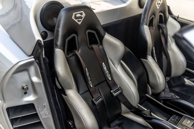 Es así como se le realizaron una serie de ajustes. Para empezar, el depósito de combustible que está tras los asientos se cambió por una a medida que se instaló en el maletero delantero. Los asientos originales también debieron dejar su lugar a unas de tipo baquets tapizados en cuero gris y negro con el logo de Superman, todo con cinturones de cuatro puntas. La capota original también fue eliminada, pasando a tener un techo de lona fabricada a medida que deja mayor espacio para la cabeza. El interior se completa con equipo de sonido Alpine.