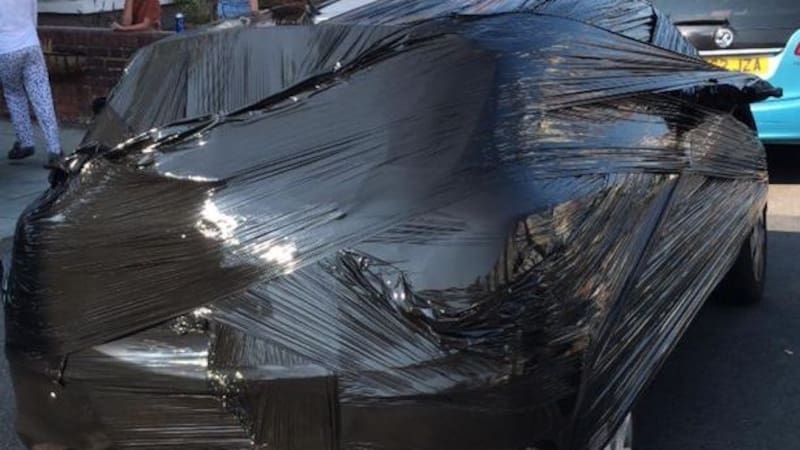 Ligada a los autos siempre se encuentra una que otra noticia peculiar, como el caso del japonés que fue detenido por pinchar ruedas de vehículos conducidos por mujeres para tener el pretexto de abordarlas cuando le parecían atractivas. Ahora las rarezas vienen del sureste del Reino Unido, donde un hombre cansado por que le ocuparan la entrada a su casa, envolvió completamente un auto en nylon.