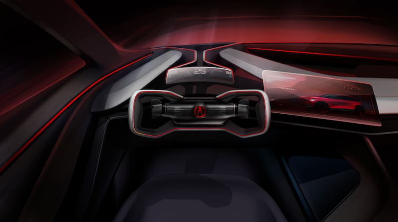 Este concepto, que fue creado por Acura Design Studio en la ciudad de Los Ángeles, exhibe una evolución de la parrilla Diamond Pentagon de Acura, la cual no necesita tener tomas de aire como uno a combustión interna.