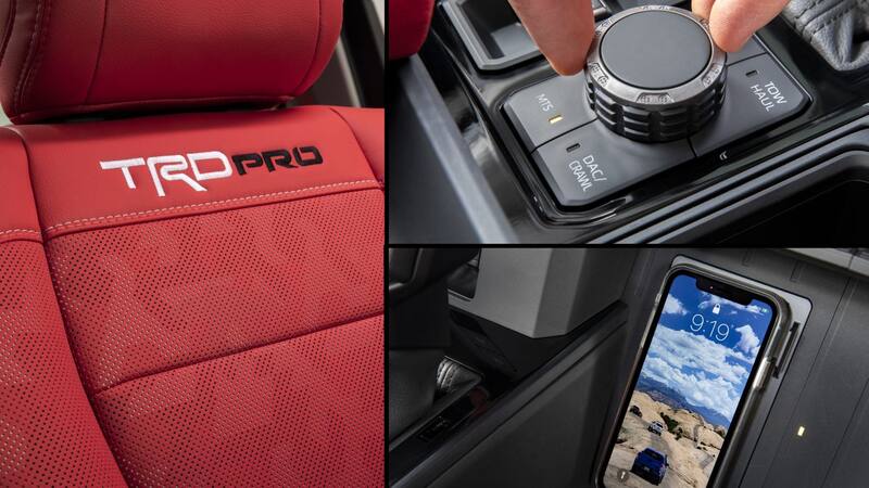 Toyota de Estados Unidos continúa con la seguidilla de pequeños detalles de la próxima camioneta Tundra de nueva generación. La japonesa, que hace dos semanas mostró el techo panorámico de la pick-up de tamaño completo para Norteamérica, ahora sumó a los adelantos un brevísimo video que da cuenta de detalles interiores, como asientos en cuero rojos con bordados TRD (Toyota Racing Development), un selector giratorio de modos de conducción, un sistema de control de descenso controlado y un cargador inductivo de celulares en disposición diagonal respecto del suelo.
