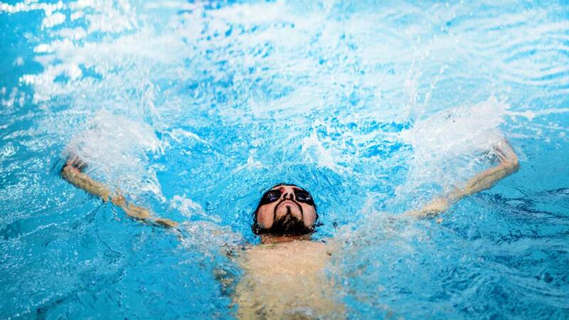 Llegó el momento de entrar al agua. Se saca sus lentes ópticos y un entrenador le ayuda a entrar a la piscina. Y como está a solo días de viajar a un campeonato en Alemania, la carga física no es alta y cruza los 50 metros unas 10 veces, hasta que sale a tierra firme y se enfunda en una toalla del equipo argentino Newell's Old Boy's para no enfriarse.