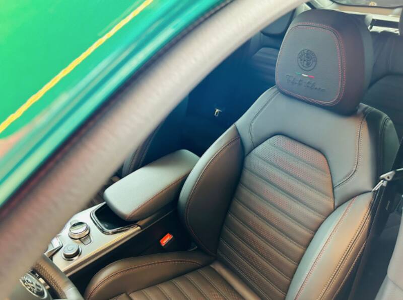 Adentro estos Giulia y Stelvio se distinguen por unos asientos deportivos de cuero negro con perforaciones y toques en rojo, además de unos reposacabezas delanteros que tienen bordado el logotipo distintivo de la serie especial. Se incluyen también costuras rojas en tablero, asientos y paneles de las puertas.