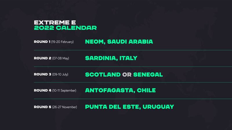 Alejandro Agag, director de la Extreme E, comentó sobre los desafíos que “después de una primera temporada espectacular, estamos encantados de estar en posición de anunciar nuestro calendario para la segunda. Todos los que formamos parte de Extreme E estamos deseando volver a visitar algunas de las increíbles ubicaciones de las carreras de 2021 para ver por nosotros mismos el impacto positivo que ha tenido nuestro campeonato eléctrico y ver qué más podemos aportar a las comunidades de allí. También tenemos muchas ganas de añadir Sudamérica a nuestra lista de continentes, y con las visitas previstas tanto a Chile como a Uruguay se perfila otra temporada emocionante”.