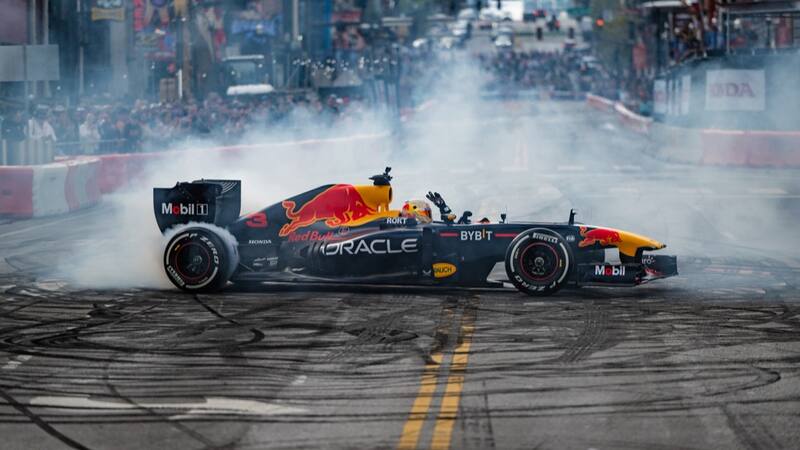 El showrun es una exhibición controlada de un vehículo motorizado, en este caso, de un monoplaza de F1.