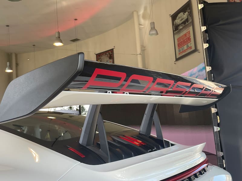 Una de sus particularidades es que por primera vez en un Porsche de serie el borde superior del alerón trasero es más alto que el propio auto.