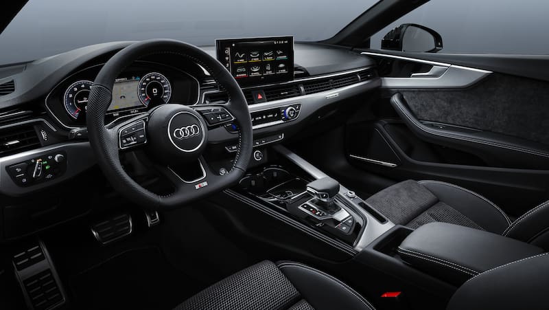Todos los A5 vienen con Audi Drive Select, levas al volante, techo panorámico, climatizador de tres zonas, iluminación interior LED, asientos delanteros deportivos y calefactados con ajuste eléctrico y soporte lumbar, entre otros.