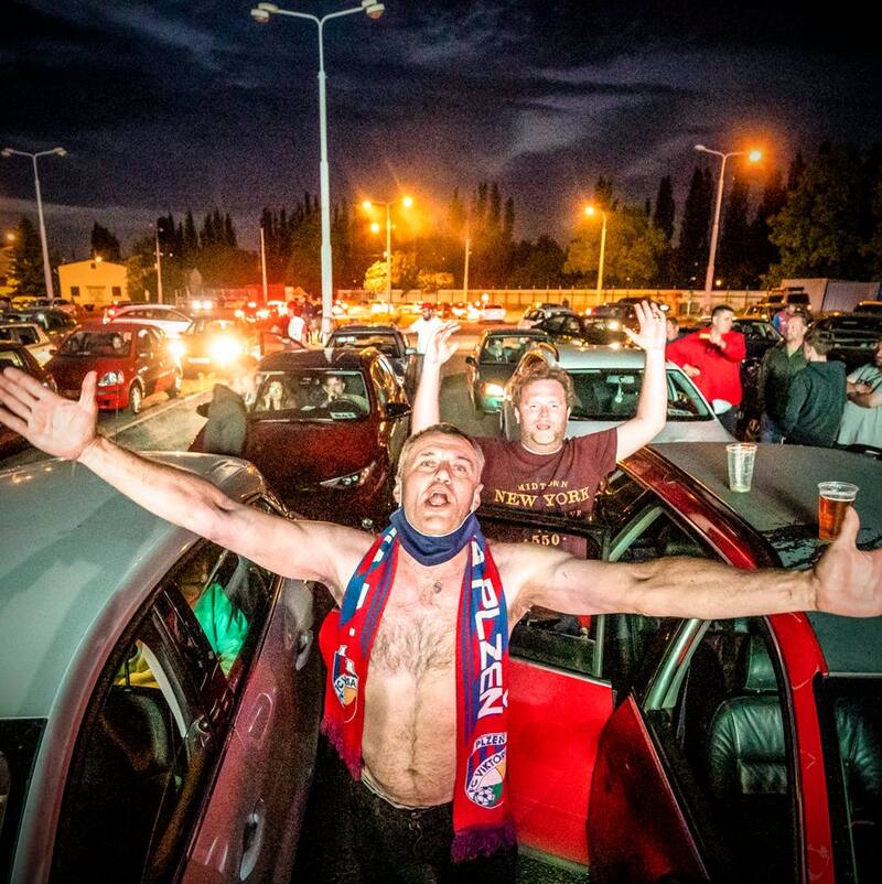 La idea de ir a ver el partido en los autos vino por parte de los hinchas del Viktoria Pilzen quienes llenaron dos autocines en el duelo como visitante contra el Sparta de Praga, el líder y el equipo más importante de R. Checa.