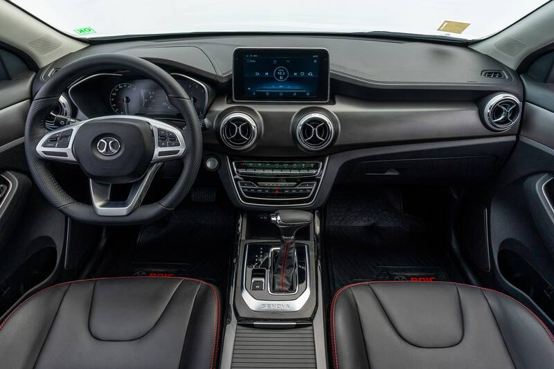 Adentro, vemos el gran salto de Baic respecto de los modelos de su primera oleada, tal como nos están acostumbrando las marcas chinas. Acá encontramos una gran variedad de materiales, mezclas de texturas y buenas terminaciones. Sin duda, una de las que más llaman la atención es un cuero tipo tela aplicado en algunas partes de las puertas y en el tablero que realmente se ven bien. El diseño es funcional y todo está bien ordenado. El panel de instrumentos es completo, solo hay que acostumbrarse a que la aguja del tacómetro está en el sentido contrario de la aguja del reloj, pero nada muy terrible. Al centro la pantalla flotante de 9′' para su sistema de infoentretenimiento, que ofrece mando de acceso rápido a las principales funciones.