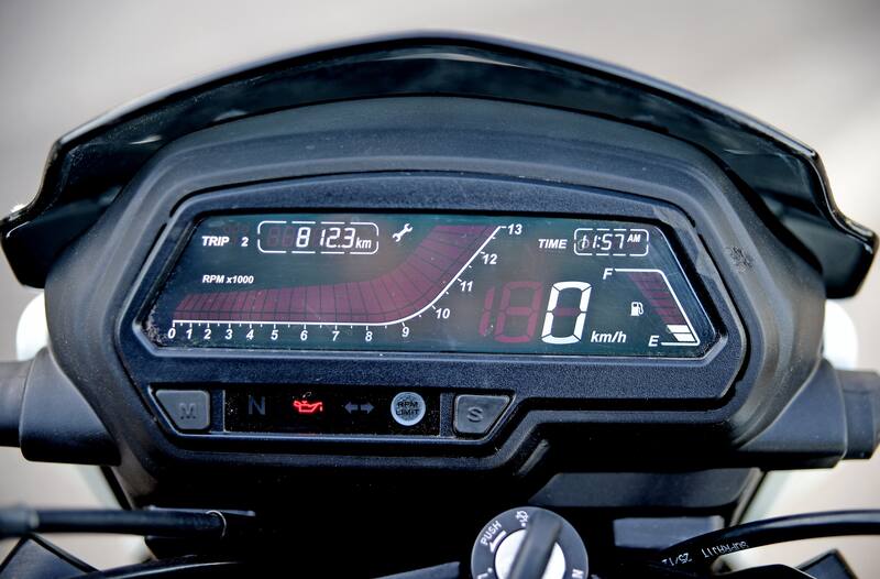 En potencia, la marca Bajaj tiene entre manos algo totalmente nuevo si miramos el resto de la familia Pulsar. Sin embargo, con 13 litros de capacidad, digamos que el estanque no aumentó mucho. Aunque aperados de combustible a full, podremos ir tranquilos por una autonomía de 250 kilómetros. Ahora, si andamos a fondo en todo momento, a olvidarse… Ahora, su esbelta forma final nos sacará con prontitud de los tacos y en las curvas o virajes vamos a degustar sus más destacadas notas.