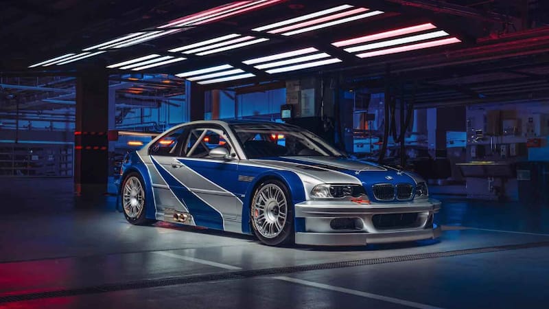 La firma bávara trae al mundo real el BMW M3 GTR de color azul y plateado, protagonista de la entrega "Most Wanted".