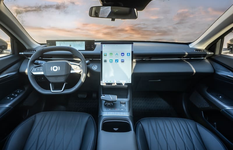 El equipamiento interior incluye panel de instrumentos digital de 10,25”, pantalla táctil vertical de 13,2” con compatibilidad para Android Auto y Apple CarPlay, climatizador con salidas para las plazas traseras y sistema de comandos por voz.