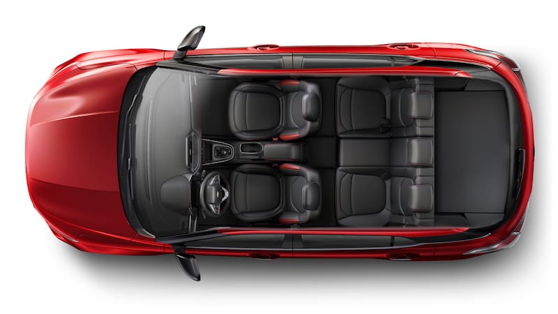 En el interior la sensación que nos entrega es de una buena calidad de materiales, correctísimas terminaciones y ese look juvenil con costuras rojas en el panel, combinado con asientos de ecocuero que también lucen zonas de color rojo.