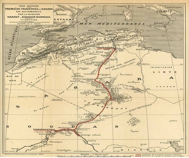 En diciembre del año 1922, Citroën tuvo la osadía de intentar manejar vehículos motorizados a través del Desierto de Sahara. Toda una hazaña considerando las limitaciones tecnológicas de la época. El viaje hacia el sur, comenzando en Argelia y cruzando el desierto africano hasta Tombuctú, en Malí (parada histórica en la ruta comercial en la Edad Media), cubrió casi 3.200 km y 21 días.