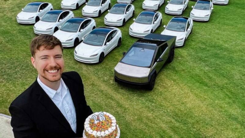 Jimmy Donaldson, más conocido en redes sociales e internet como MrBeast, nació el 7 de mayo de 1998, por lo que acaba de cumplir 26 años y lo celebrará por todo lo alto. En un alarde de exceso, regalará 26 Tesla entre sus seguidores.