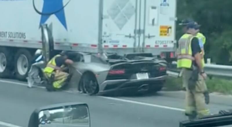 El conductor de un Lamborghini Aventador quedó atrapado debajo de un enorme camión con remolque, luego de impactar, según testigos, a gran alta velocidad. Por suerte, apenas sufrió heridas leves y pudo ser sacado del auto con relativa facilidad.