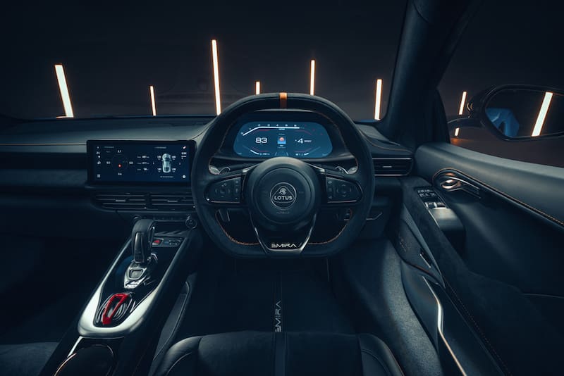 Por otro lado, el Emira pone énfasis en la usabilidad diaria, buscando alejarse así de sus predecesores más radicales. De ahí, entonces, que su interior cuente con una multitud de puertos USB, guardaobjetos en las puertas y consola central, además de una pantalla de 10,25 pulgadas para el sistema de infoentretenimiento, el cual es compatible con Apple CarPlay y Android Auto.