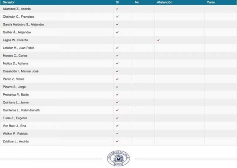 La moción nació desde los mismos senadores, especialmente promovida por Alejandro García-Huidobro, Guido Girardi, Juan Pablo Letelier, Manuel Antonio Matta y Manuel José Ossandón. En dicha cámara se aprobó con 17 votos a favor y una abstención.
