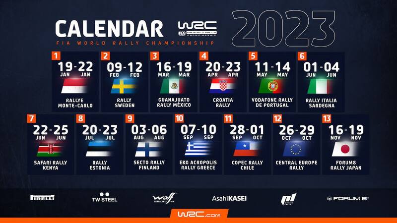 La próxima temporada se iniciará en Montecarlo, entre 19 al 22 de enero. Luego, la nieve y el hielo de Suecia (9 al 12 de febrero) esperarán a los pilotos, ya que el campeonato también retorna a Umeå, después de un exitoso debut del nuevo aspecto del rallye de invierno en 2022.