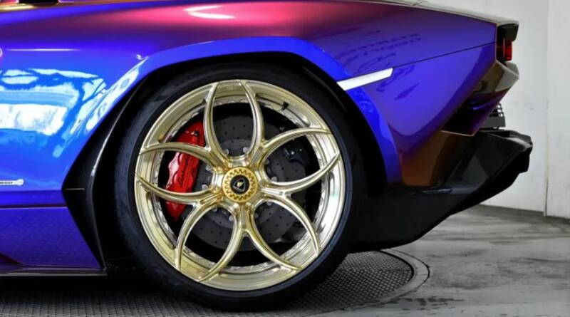 Además de este particular acabado de pintura, este Lamborghini Countach cuenta con una suspensión rebajada, así como con unas llantas de aluminio pulidas en color dorado que combinan con la carrocería. Se trata de unas S2-X0 de la firma ANRKY y son de 20″ delante y de 21″ detrás, como las originales.