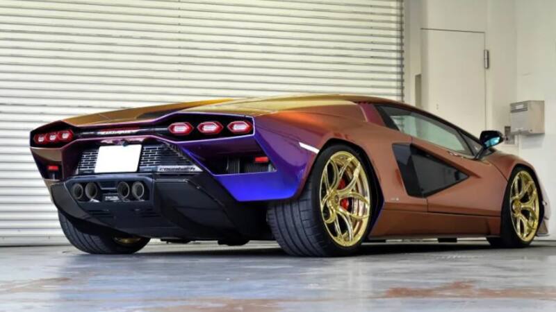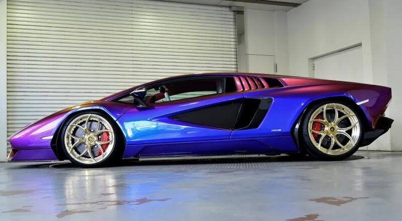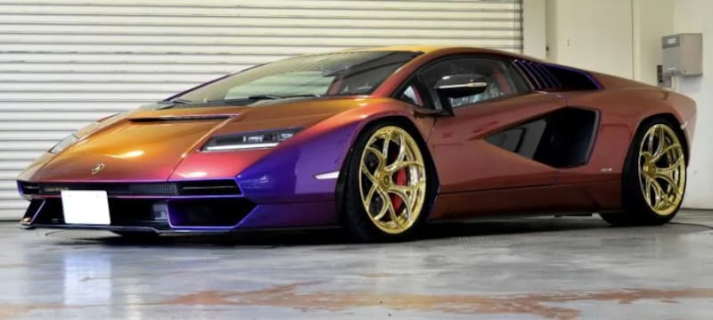 Hablamos del Lamborghini Countach de un cliente japonés que optó por una carrocería con una pintura iridiscente y otros detalles. Se trata de un color oficial aplicado por la propia marca italiana, con el cual el superdeportivo se ve con tonos morados y anaranjados, creando un efecto espectacular.