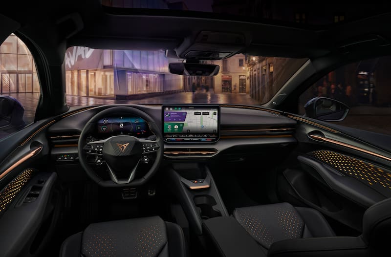 El interior refuerza el enfoque en el conductor, con un diseño digital que integra un cuadro de instrumentos de 10,25” y una pantalla central de 12,9”, además de iluminación ambiental y materiales sostenibles, como tapices reciclados. A pesar de su tamaño, ofrece un maletero de 441 litros, destacando en practicidad para el uso diario.