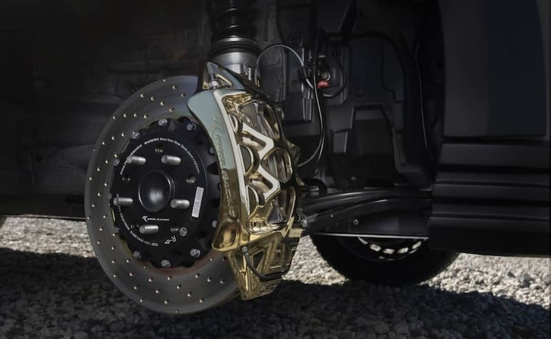 La suspensión fue modificada con un sistema roscado que aumenta la altura libre al suelo en 76 mm, con la opción de un kit hidráulico que permite elevarlo aún más según las condiciones del terreno.