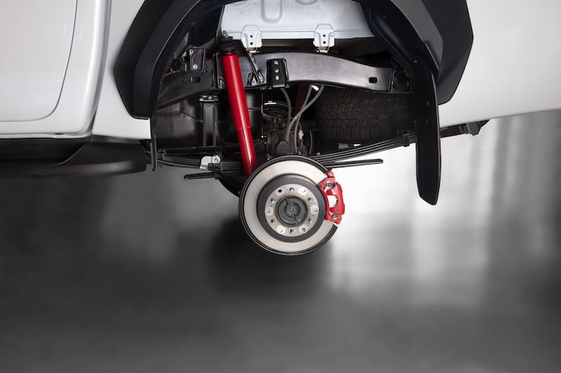 Otra de sus mejoras fueron sus discos de freno incorporados en el eje trasero, los cuales le otorgan un mayor rendimiento de frenado con tacto deportivo, además de incorporar calipers teñidos de rojo con el emblema de GR-S, para completar el look deportivo.