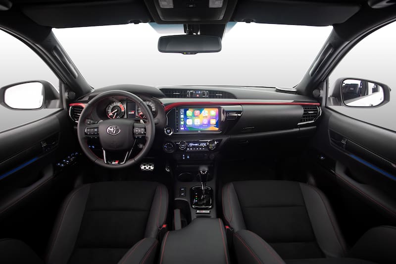 Esta Toyota Hilux GR Sport mide 5.325 mm de largo, 2.020 mm de ancho, 1.830 mm de alto y 3.085 de distancia entre sus ejes.
