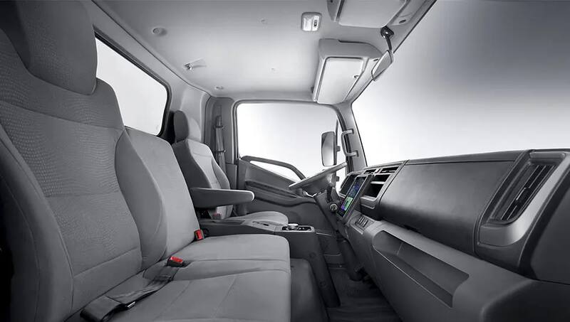 - Interior equipado con asiento con suspensión neumática para el conductor, pantalla MP5 con cámara 360°, aire acondicionado, alza vidrios eléctrico, velocidad crucero.