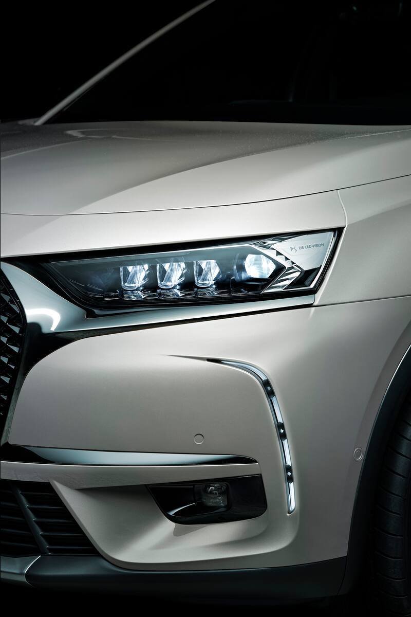 En este punto, resalta la máscara cromada, una parrilla con dibujos donde empezamos a ver la figura del rombo que se repite en el interior y que apela a la alta joyería, y grupos ópticos con luces LED (la marca lo llama DS Active Led Vision) que se iluminan con una luz violeta cuando se abren las puertas y que luego se giran en 180º para entregar todo su poder lumínico. Inspirado en lo que se apreció en el conceptual DS E-TENSE, es realmente un verdadero lujo.