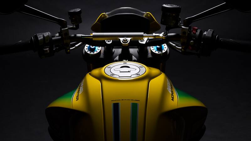 La nueva Ducati Monster Senna será una serie limitada a 341 unidades. Lleva los colores de la bandera de Brasil en una decoración homenaje creada por el Ducati Style Centey que se extienden a las pinzas delanteras, el sillín y las etiquetas de las ruedas.