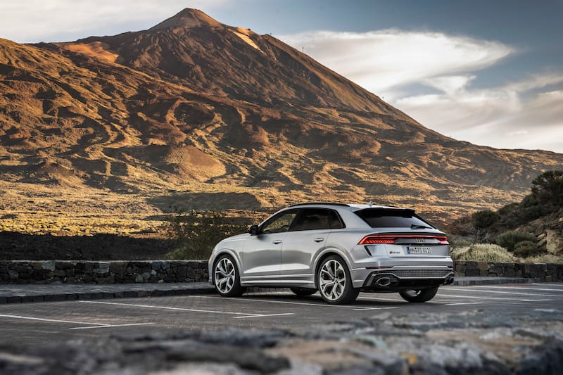 Como resulta lógico, el Audi RS Q8 deriva del Audi Q8 de base, que a su vez debutó en el país en noviembre de 2019. Eso sí, tras pasar por la mano de la división Audi Sport, el RS Q8 de corte coupé alteró ligeramente sus cotas. Así, es más largo, más ancho, pero más bajo que su citado hermano: tiene 5.012 mm de largo (+26 mm), 1.998 mm de ancho (+3 mm) y 1.694 mm de alto (-11 mm). La distancia entre ejes se mantiene inalterada en 2.995 mm. Como gran novedad, el Audi RS Q8 equipa gigantescas llantas de cinco rayos en Y de 23 pulgadas (con neumáticos 295/35). El maletero es de 605 litros.